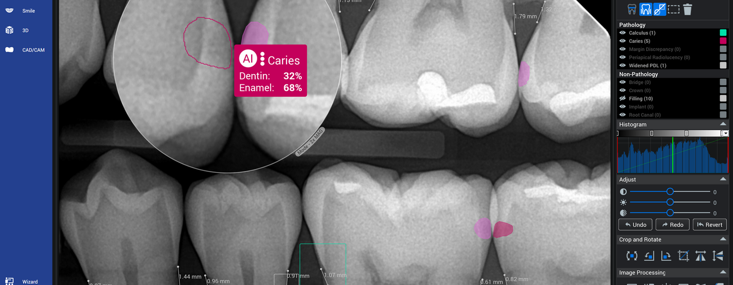 a 3D RTG dat, navržený speciálně pro stomatologii a maxilofaciální oblast. Využívá pokročilé analytické a asistivní Al nástroje, které zvyšují přehlednost obrazových dat.